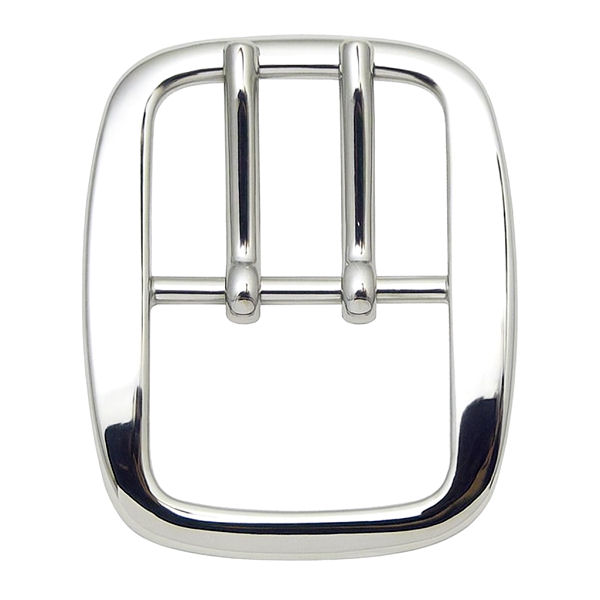Eine Doppel-Gürtelschnalle mit 2 Dornen in der Farbe nickel glänzend poliert.